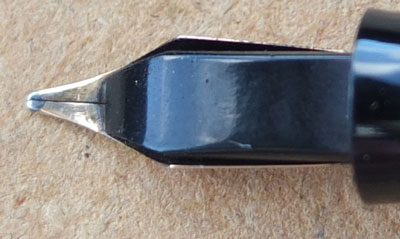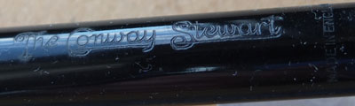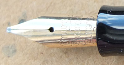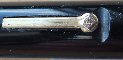 Here is a very nice condition CS15 in black, made around 1950; the pen is a lever-filler and has a medium grade 14ct gold nib and writes nicely; there is little or no plating wear on the band, the clip or the lever; there are no cracks, chips or deep scratches and the imprint is crisp.