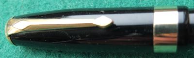 Here is a very nice immaculate condition CS60 in black, made around 1950; the pen is a lever-filler and has a broadish medium grade 14ct gold Duro nib and writes nicely; there is a no plating wear on the band, the lever, or the clip; there are no cracks, chips or deep scratches and the imprint is very readable. A lovely pen and big too.