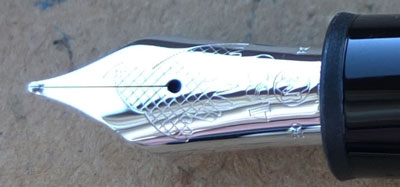 This is a mint Limited Edition fountain pen, launched in 2007, that has not been used however, it has been dipped to see how it writes; it comes in its original box with its booklet, the medallion and other bits, and the outer box. It is made from black precious resin with platinum-plated fittings; it is one of the Donation Series. The box and the bits are all good but the outer sleeve has a few marks.