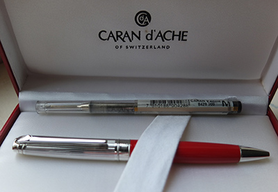 > Caran d'Ache Leman Ballpoint Pen in Scarlet Red with Rhodium-plated Cap and Trim