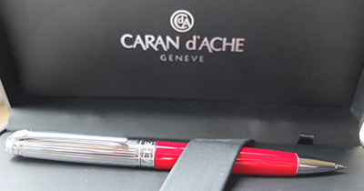 > Caran d'Ache Leman Pencil in Scarlet Red with Rhodium-plated Cap and Trim