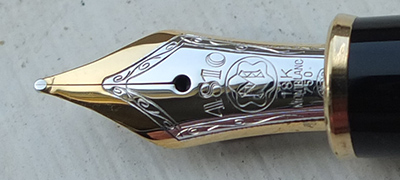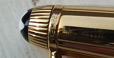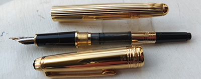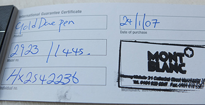 This pen has not been used so is in beautiful condition, in its original box with outer box and booklet; the clip has a serial number and is good and secure; there are no names or initials on the pen; the pen is a cartridge or converter-filler and has a converter fitted. The nib is a medium grade 18k gold two-colour and, as one would expect, will write nicely. This pen dates from 2007.