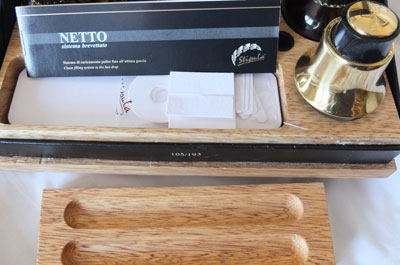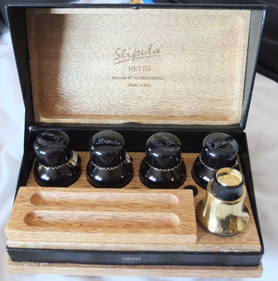 oeu096: Here we have the Stipula Netto De-Luxe pen filling set which ensures your Stipula pen remains in tip-top condition with no dulling of the surfaces; this set is limited to 193 pieces and this is number 105; this is essential for the serious Stipula pen collector. £245.00 |