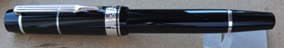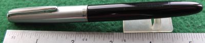 oeu292: A Faber Castell piston-fill fountain pen in black with a brushed steel cap and clip; the pen has a 14ct gold broad oblique nib and writes beautifully. £55.00 SOLD |