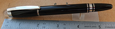 oeu240: A mint unused Mont Blanc Starwalker midnight black resin fountain pen with a medium grade 14 ct gold nib; the pen uses cartridges; the pen is boxed and has its outer box too. £245.00 SOLD |