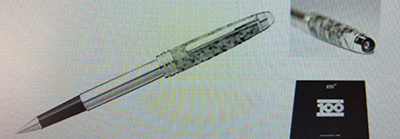 oeu260: Here is new-old-stock unused unopened sealed Montblanc Model No.36689 Soulmakers-for-100-Years Limited-Edition Rollerball; it is numbered 0038 of a limited edition of 1906 pens. The cap is crowned by a large 43 facet diamond, cut in the form of the Montblanc signet. The granite cap is carved from a boulder hewn from the Mont Blanc massif, combined with a 925 Sterling Silver barrel; the pictures show the end of the box and a copy-picture of the pen from a MB catalogue. £1450.00 |