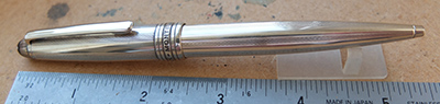 oeu261: A Mont Blanc ballpoint pen in 925 silver with 925 silver trim and in lovely condition; the pen has been used but not a lot, I would think, and dates from the 1990s; it writes nicely! £325.00 |