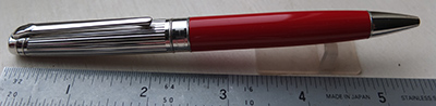 oeu146: A mint unused and unopened Stipula Novecento twist-action ballpoint pen in red and black with 925 silver trim; this pen is still in its original sealed plastic sleeve in its box with outer box. £225.00 |