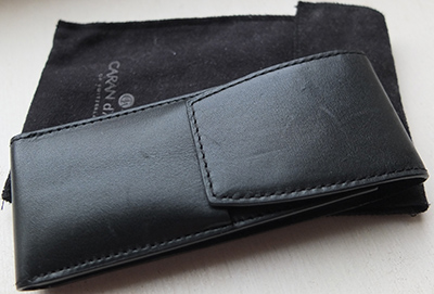 oeu271: A Caran D'Ache leather pen pocket in its original box with a felt protective cover; it has been lightly used but is in lovely condition and holds 3 pens £65.00 |