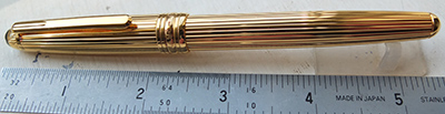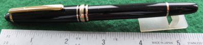 oeu293: A lightly used Mont Blanc Classic fountain pen in black with gold-plated trim; this pen is a cartridge or converter-fill and has a converter fitted; the nib is medium grade 14ct gold and has a little flex; the pen is boxed and I think its probably the original; its all in lovely condition. £95.00 SOLD |