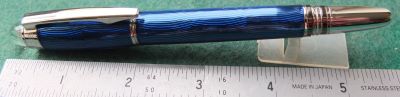 oeu289: A mint unused Mont Blanc Starwalker ballpoint pen in blue with platinum-plated trim; this pen has a serial number and is in its original box with booklet; it is in mint condition so much so that the refill still has the original factory blob of wax on the writing tip. £295.00 SOLD |