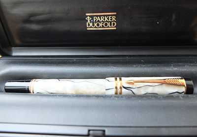 > International Duofold in Black and Pearl with Gold-Filled Trim