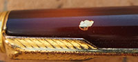 Here we have a lightly-used condition Parker 180 cartridge or converter-fill fountain pen in tortoiseshell finish with gold-filled trim; the pen has an extra-fine/medium grade nib; the pen has been used and is in lovely functional condition as there are no cracks, splits or serious scratches and the clip is firm BUT there are a few spots where the laque has been lost and the clip is spotted with marks.