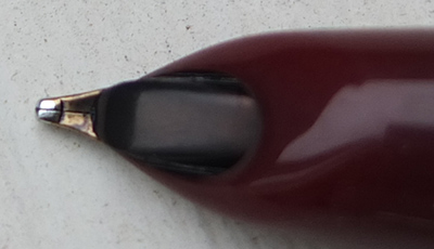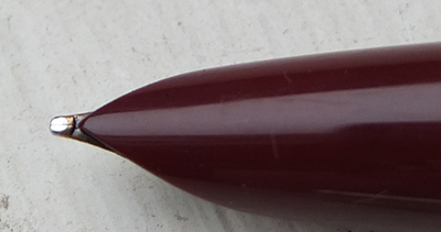 This is a very nice 51 fountain pen in burgundy with a gold-filled cap; the pen is in lovely condition but has been used; the nib is a medium grade 14ct gold and writes nicely.