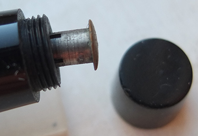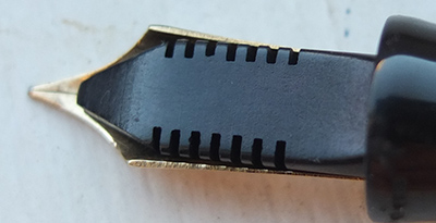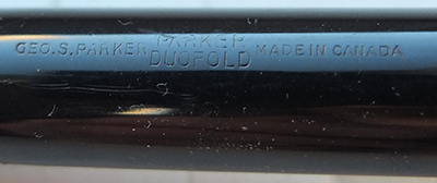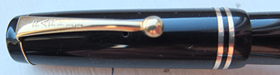 Here is a very nice Duofold Senior Streamline fountain pen in black permanite from 1926 ish with a readable imprint; this pen has been used so has a few small marks consistent with that use but it is not damaged and any new owner, wanting it to use, will be thrilled with it; it has a lovely medium grade 14ct gold nib and writes nicely; the pen has obviously been well looked after, albeit used, but there are no signs of plating wear on the clip and the bands; there are slight signs of wear where the cap fits but not where it is posted.