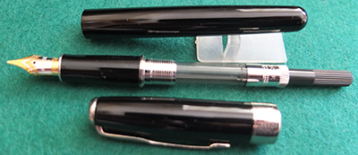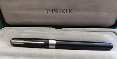 Here we have an almost mint Sonnet fountain pen in black with chrome plated trim; the pen is a cartridge or converter-filler and has a converter fitted; it has a medium grade 18ct gold nib and writes nicely. The pen is boxed and it is probably the original.