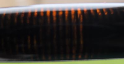 A nice condition extra-long Debutante-size Vacumatic fountain pen in black that has a plastic filler; there is no plating wear on the bands and just a little on the high points of the clip. There are no cracks or splits and virtually no scratches either; the clip tassie is black. The pen has been stripped, cleaned, had a new diaphragm fitted, reassembled, adjusted, and write tested. The nib is a fine grade single-colour 14ct gold, and I would think, original to the pen; it writes nicely with some flexibility. The imprint is very readable.