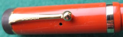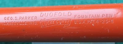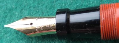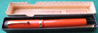 Here is a very nice Duofold Senior Lucky Curve fountain pen in red permanite from 1926 ish with a crisp imprint; this pen has been used so has a few small marks consistent with that use but it is not damaged and any new owner, wanting it to use, will be thrilled with it; it has a lovely extra-fine grade 14ct gold nib and writes nicely; the pen has obviously been well looked after, albeit used, but there are slight signs of plating wear on the band; there are slight signs of wear where the cap fits but not where it is posted. Please note the pen is boxed but its not the original.