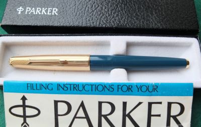 > Parker 65 Fountain Pen in Blue with Gold-filled Trim