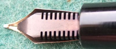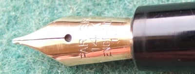 Here is a very nice Duofold Junior fountain pen and ballpen set in black from the 1960s with a crisp imprint; this pen has been used so has a few small marks consistent with that use but it is not damaged and any new owner, wanting it to use, will be thrilled with it; it has a lovely medium grade 14ct gold nib and writes nicely; the pen set has obviously been well looked after, albeit used, but there are no signs of plating wear on the bands or the clips; there are no signs of wear where the cap fits nor where it is posted. Please note the pen set is boxed but its a bit 'dog-eared.