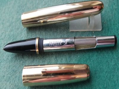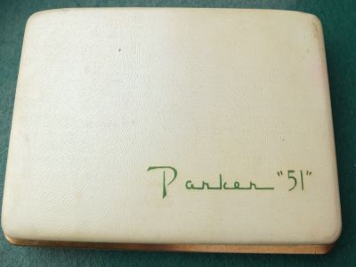 A beautiful condition unused (I would say uninked but I have dipped it to make sure it writes nicely) 51 fountain pen and pencil set in gold-filled finish; the pen ink sac is clear see-through; this set is USA made in 1948 so is one of the first aerometric 51s made and is in a very rare box, one I have never handled before; this set is immaculate. The pencil has spare leads and the original eraser.