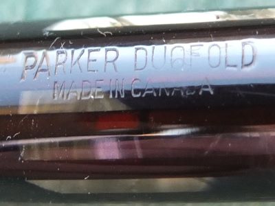 A very nice condition Junior Duovac fountain pen and pencil set in blue, silver and black with gold-plated trim; the pen has a vacumatic style plastic pump; there is virtually no plating wear on the bands, the nozzle, or the clips. There are no cracks or splits and virtually no scratches either. The pen has been stripped, cleaned, had a new diaphragm fitted, reassembled, adjusted, and write tested. The nib is a fine grade 14ct gold, and I would think, original to the pen; it writes nicely. The imprint is very readable and the set is boxed but I not sure its the original.