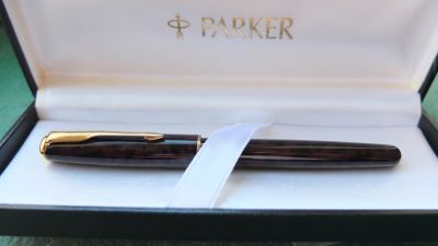 A very nice condition, even mint, Sonnet fountain pen in laque firedance that is a cartridge or converter filler with a converter fitted; the pen has gold-plated trim. There are no cracks or splits and no scratches either; the nib is a fabulous broad oblique grade 18ct gold and will write like a dream.