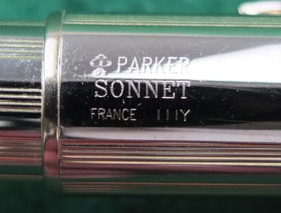 Here we have a mint but inked immaculate-condition French-made Parker Sonnet fountain pen in gold-filled finish with gold-filled trim; the fountain pen is a cartridge or converter-fill pen and has a converter fitted; the pen has a broad oblique grade 18ct gold nib; the pen has not been used so is in immaculate condition; there are no cracks, splits or scratches and the clip is firm.