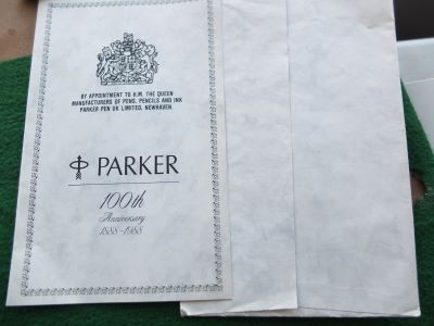 Here we have a mint condition Parker Centennial fountain pen in red and black marbled finish; the fountain pen is a cartridge or converter-fill, with a converter fitted, and a fine grade 18ct gold nib; this pen has not been used so is in such super condition however, it has been inked; there are no cracks, splits or scratches and the clip is firm; the pen is boxed and I'm assured it is the original. This pen was given as a Centennary Gift to a retiring employee after 25 years service and comes with the related leaflet. Please note the box is good but the outer card box is torn in a couple of places.