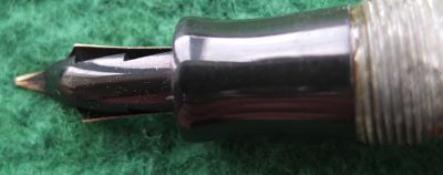 Here is a very nice Canadian Premiere in grey and red from 1945 ish with gold trim and a crisp imprint; this pen has been used so has a few small marks consistent with that use but it is not damaged and any new owner, wanting it to use, will be thrilled with it; it has a lovely fine grade 14ct gold Canadian nib and writes nicely; there are no signs of plating wear on the band and not on the clip; there are very little signs of wear where the cap fits or where it is posted.