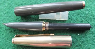 This is a lightly used but good 61 Capilliary fountain pen with gold-filled cap; this pen is in beautiful condition with no signs of having been used very much; you can see the filler tube still shows sigs of its original red colour. The nib in the fountain pen is a medium grade 14ct gold and will write nicely. These capilliary 61s are hard to find in good little-used condition.