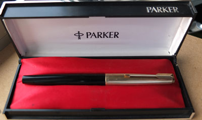 Here we have a nice condition Parker 51 Mk2 fountain pen in black with a gold-filled cap; the pen has a fine grade 14ct gold nib and is an aerometric filler; the pen has been used but obviously hasn't been used a lot as it is in such lovely condition; there are no cracks, splits or serious scratches and the clip is firm. The ink sac is see-through but the pen has been inked. The box is good