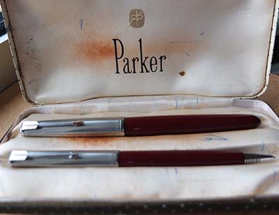 > Parker 51 Aerometric Fountain Pen Set in Burgundy with Lustaloy Caps