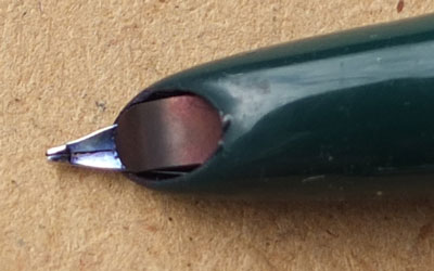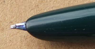 Here we have a very nice condition Parker 51 twin jewel vacumatic fountain pen in cordovan brown with a gold-filled cap and a blue diamond clip; the pen has plastic jewels, a plastic pump, and a fine grade nib; it is a vacumatic filler; the pen has been used but obviously hasn't been used a lot as it is in such lovely condition; I think this pen dates from the second quarter of 1945.