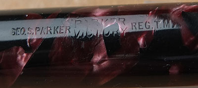 Here is a very nice English Victory in red and black marbled finish from 1945 ish with a readable imprint; this pen has been used so has a few small marks consistent with that use but it is not damaged and any new owner, wanting it to use, will be thrilled with it; it has a lovely medium grade 14ct gold nib and writes nicely; there are signs of plating wear on the ball of the clip but none on the bands; there are slight signs of wear where the cap fits and where it is posted.