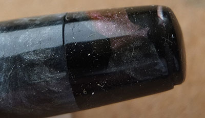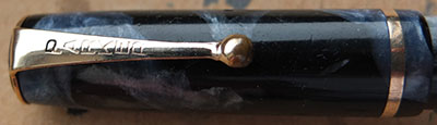 Here is a very nice Canadian Premier in blue and black marbled finish from 1932 ish with a readable imprint; this pen has been used so has a few small marks consistent with that use but it is not damaged and any new owner, wanting it to use, will be thrilled with it; it has a lovely fine grade 14ct gold nib and writes nicely; there are signs of plating wear on the ball of the clip but none on the band; there are slight signs of wear where the cap fits and where it is posted. This pen is a bit unusual as it has some red in the material of the blind cap and I've not seen that before.