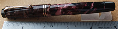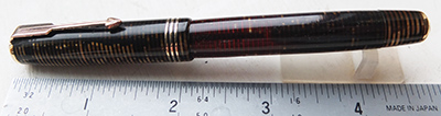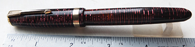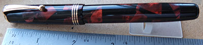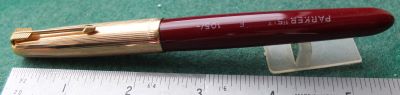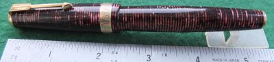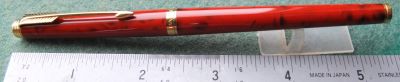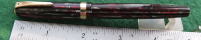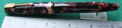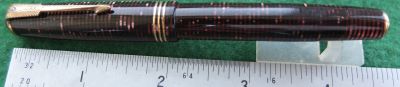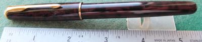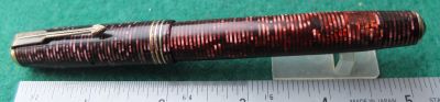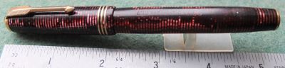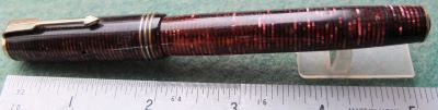 par897: An English Parker Victory in red and black marbled finish from 1945 or thereabouts in good mechanical condition with a nice medium grade 14ct gold nib and two cap bands £125.00 |