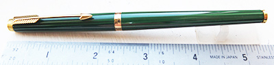 par1191: A mint uninked beautiful 180 in green and black lined laque finish with gold-filled trim and a fine and broad grade nib; the pen dates from 1983 or thereabouts; the feed has F/B on it. £135.00 |
