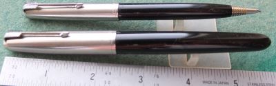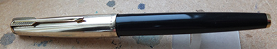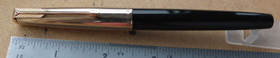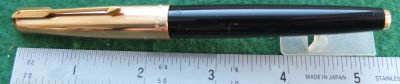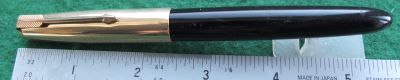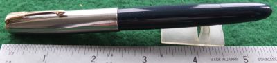 par427: A very nice 51 Mk2 fountain pen in black with a gold-filled cap; the pen is an aerometric(squeezy)-filler and has a fine grade 14ct gold nib and writes nicely £75.00 SOLD |