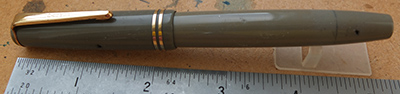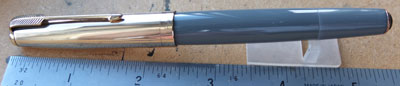 par1049: A Parker Victory in grey with gold-filled trim from 1942 or thereabouts in good mechanical condition with a nice medium grade 14ct gold nib and two cap bands £55.00 |