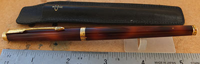 par1090: A lightly-used 180 in 'Tortoiseshell' finish with gold-filled trim and a extra-fine/medium grade nib; the pen dates from 1983 or thereabouts; the feed has X/M on it which means that when writing on one side of the nib it is extra-fine and when writing on the other side it is medium. £65.00 |