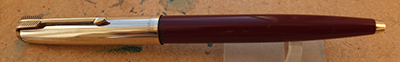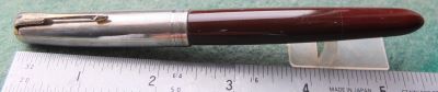 par1298: A very nice condition used Parker 51 Vacumatic fountain pen in cordovan brown with a gold-filled cap and a clip; the pen has a very nice medium grade 14ct gold nib £85.00 SOLD |