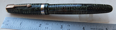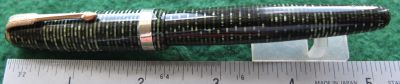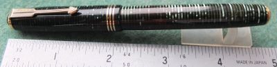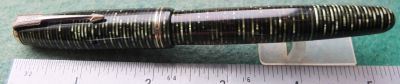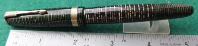 par1325: A Parker De-Luxe Challenger in green and black from 1937 or thereabouts in good mechanical condition with a nice fine grade 14ct gold nib and three cap bands £115.00 SOLD |