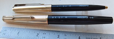 par1165: A very nice 51 Insignia aerometric in gold-filled cap and barrel; the pen has a fine grade 14ct gold nib; this is a lovely example of a desireable pen. £115.00 SOLD |