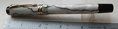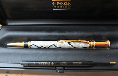 par1152: A Parker International fountain pen in black and pearl marbled finish with gold-filled trim; it has not been used much so is in lovely condition; the pen has a medium grade 18ct gold nib and writes nicely £275.00 SOLD |