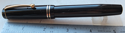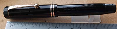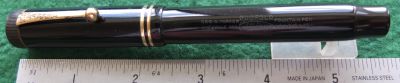 par1320: A very nice condition Lady-size ring-top Duofold fountain pen in black from 1930 with a very nice medium grade 14ct gold flexible nib. Canadian made. £65.00 SOLD |