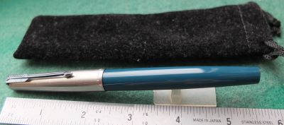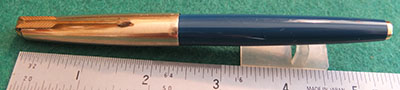 par1286: A very nice condition used Parker 51 Vacumatic fountain pen in cedar blue with a lustaloy and a gold-filled clip; the pen has a very nice medium grade 14ct gold nib £85.00 SOLD |