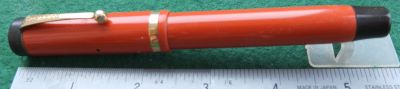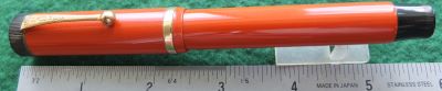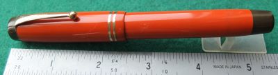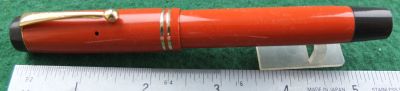 par1331: A Senior Lucky Curve Duofold fountain pen in red permanite from 1926 and in excellent condition; the pen has a fine grade 14ct gold slightly-flexible nib and a very readable imprint. £315.00 |