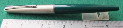 par1324: A Parker Challenger in green and black from 1937 or thereabouts in good mechanical condition with a nice extra-fine grade 14ct gold nib and a single cap band; this is the smaller version. £75.00 |