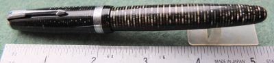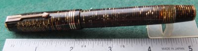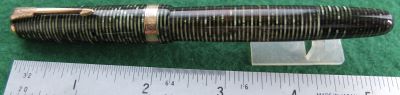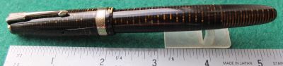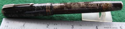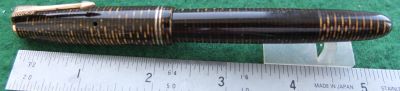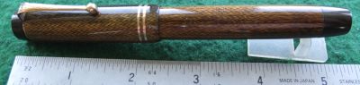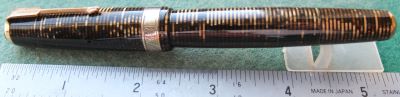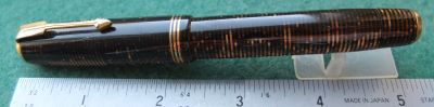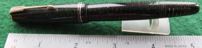 par1304: A very nice condition Senior-size Duofold fountain pen in brown and black herringbone from 1943 ish with a very nice medium grade 14ct gold nib; the nib has a little flex; this is a very desireable pen and hard to find especially in this condition. £425.00 SOLD |